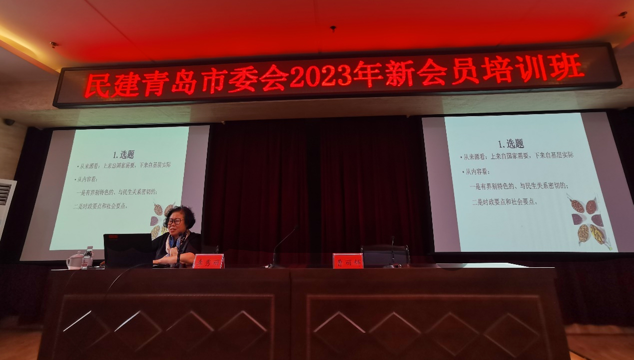 6月20日上午,我校民建青农大支部委员、人文社会科学学院李秀丽教授应邀为民建青岛市委会2023年新会员培训班授课。培训班由民建市委会秘书长曹丽辉主持,民建市委会相关部门处长、副处长到会旁听。
