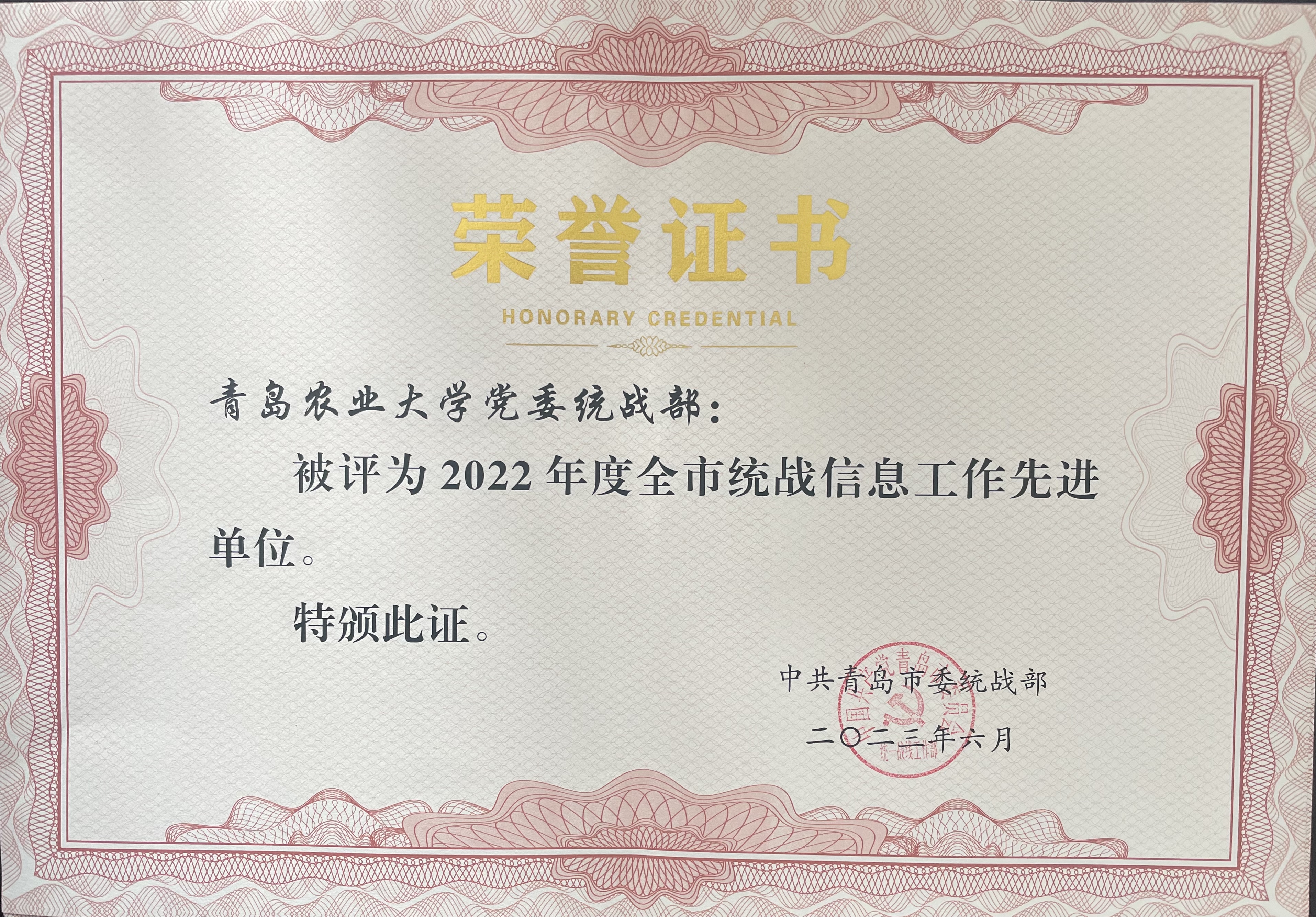 青岛市委统战部共对全市16个统战理论政策研究先进单位、16个统战宣传工作先进单位、19个统战信息工作先进单位、19名统战信息工作先进个人、6名建言献策突出贡献个人、57项统战理论政策研究优秀成果、12项统战工作实践创新成果予以通报表扬。我校党委统战部提报的工作案例《实施“青苗培育工程”加强党外代表人士建设》获评“统战工作实践创新成果”;党委统战部副部长孙贝贝获评“统战信息工作先进个人”,人文社会科学学院李秀丽教授获评“统战信息工作先进个人”和“建言献策突出贡献个人”;经济管理学院胡翔鹏提报的《政府数字化转型驱动下优化青岛市民营企业营商环境研究》获统战理论政策研究优秀成果一等奖,马克思主义学院蔡娬等提报的《民营媒介资本操作舆论传播的博弈问题研究》和档案馆初文杰等提报的《民族意识与中华民族共同体意识对立统一问题研究》获优秀成果二等奖,马克思主义学院王奇提报的《从“民族中华”到“共同意识中华”:中国民族观念的历史构建》和张广杰提报的《历史交汇期中华民族形象的具象结构与认同塑造研究》获优秀成果三等奖。