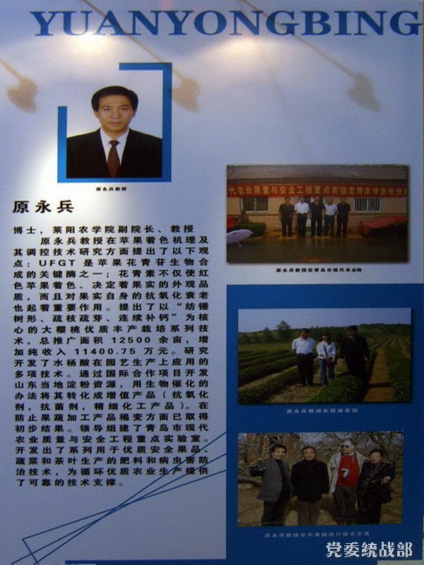 在11月9日-10日召开的青岛市第七次归侨侨眷代表会议期间,青岛市侨联在府新大厦举办了首届“青岛市优秀归国人员风采展”, 共展出了青岛市各界62名优秀归国人员服务经济社会发展的突出业绩,我校原永兵、董雅娟、柳楠、田文儒、李保华、石岩、王凯荣等7名专家榜上有名,占展出人员的11.3%,进一步宣传了莱农,扩大了学校的影响。