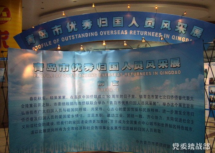 青岛市侨联举办的本次展出,旨在全面展示青岛市建国以来优秀归国人员在各条战线上取得的业绩,弘扬民族精神和时代精神,进一步激励全市广大归侨侨眷、归国留学人员立足本职,建功立业。