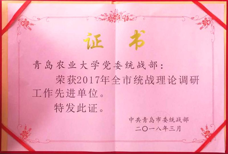 会议对受到中央统战部、省委统战部表彰的先进单位、先进个人和优秀成果及全市统战工作先进单位、先进个人和优秀成果进行了通报表彰。青岛农业大学2篇统战理论成果分获全省统战理论调研宣传“四新工程”优秀成果二等奖、三等奖,1篇统战宣传成果获全市统战宣传工作优秀成果三等奖,继获评全省统战理论调研宣传工作先进单位之后,学校再被评为全市统战理论调研工作先进单位,受到大会表彰。