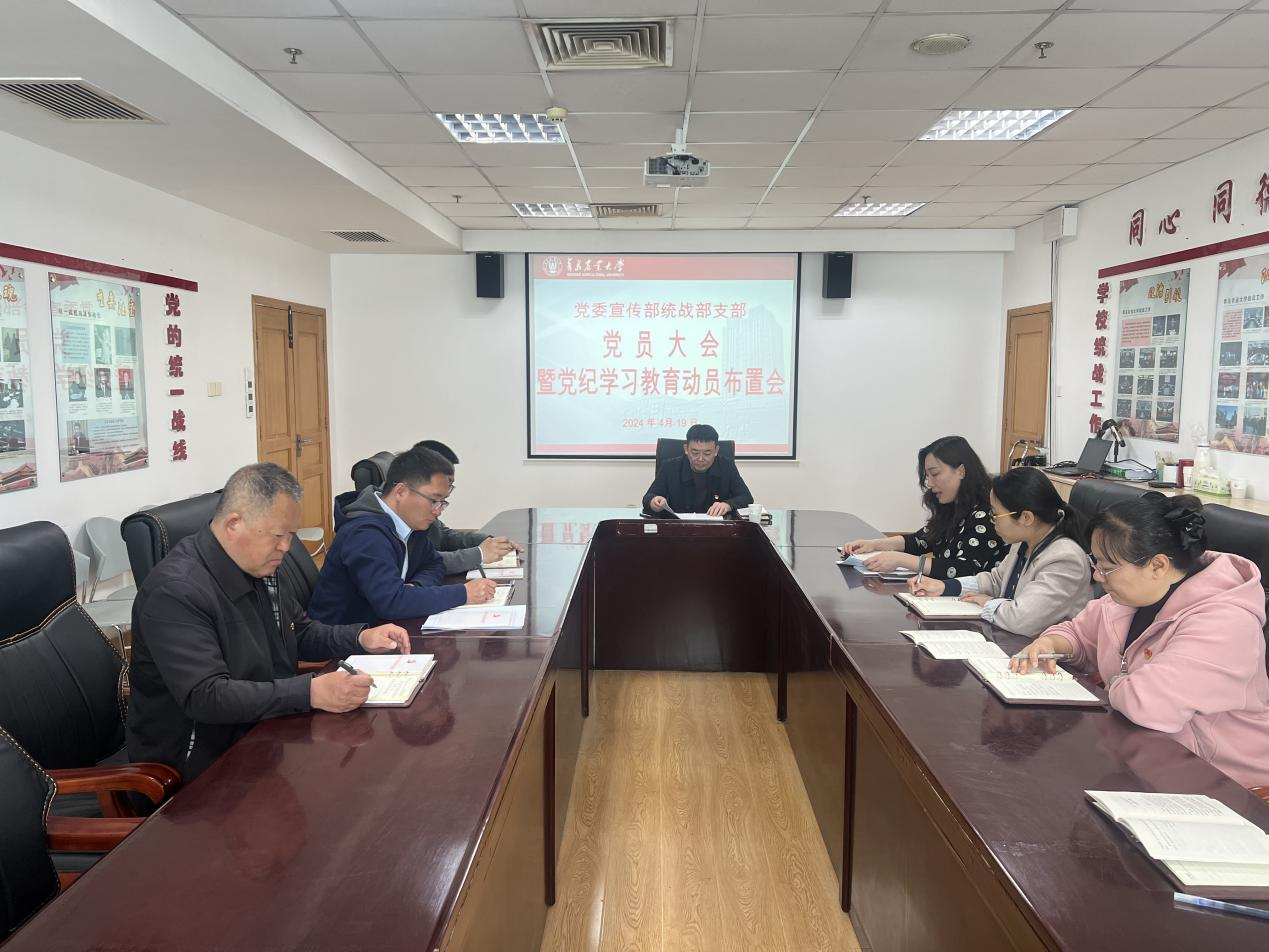 4月19日,宣传部统战部党支部召开党员大会暨党纪学习教育动员布置会。宣传部统战部党支部全体党员同志参加会议。会议由党支部书记慕乾伟同志主持。