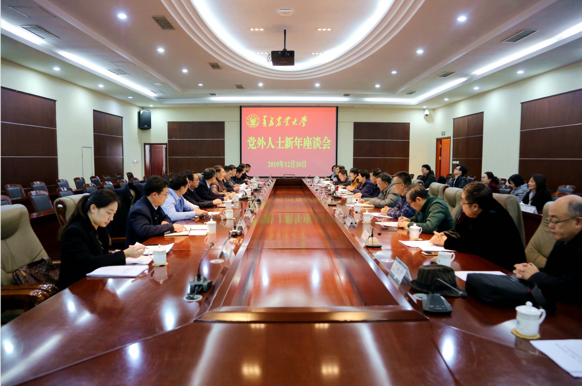 12月30日下午,青岛农业大学组织召开党外人士新年座谈会,一起回顾学校一年来的主要工作,共同展望学校未来发展的美好愿景,并就学校事业发展和2020年工作安排听取党外人士意见和建议。党委书记李宝笃出席会议并讲话,党委副书记王庆军通报学校2019年主要工作和事业发展情况,副校长原永兵出席会议,党委委员、宣传部长、统战部长慕乾伟主持会议。