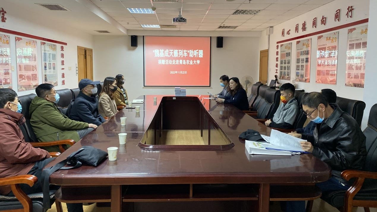 11月22日下午,青岛农业大学在主楼1202党外知识分子之家举行“魏基成天籁列车”助听器捐赠活动。活动由校党委统战部副部长孙贝贝主持,学校归侨侨眷留学归国人员联谊会会长祝军教授受邀参加活动并为受捐赠人发放助听器。