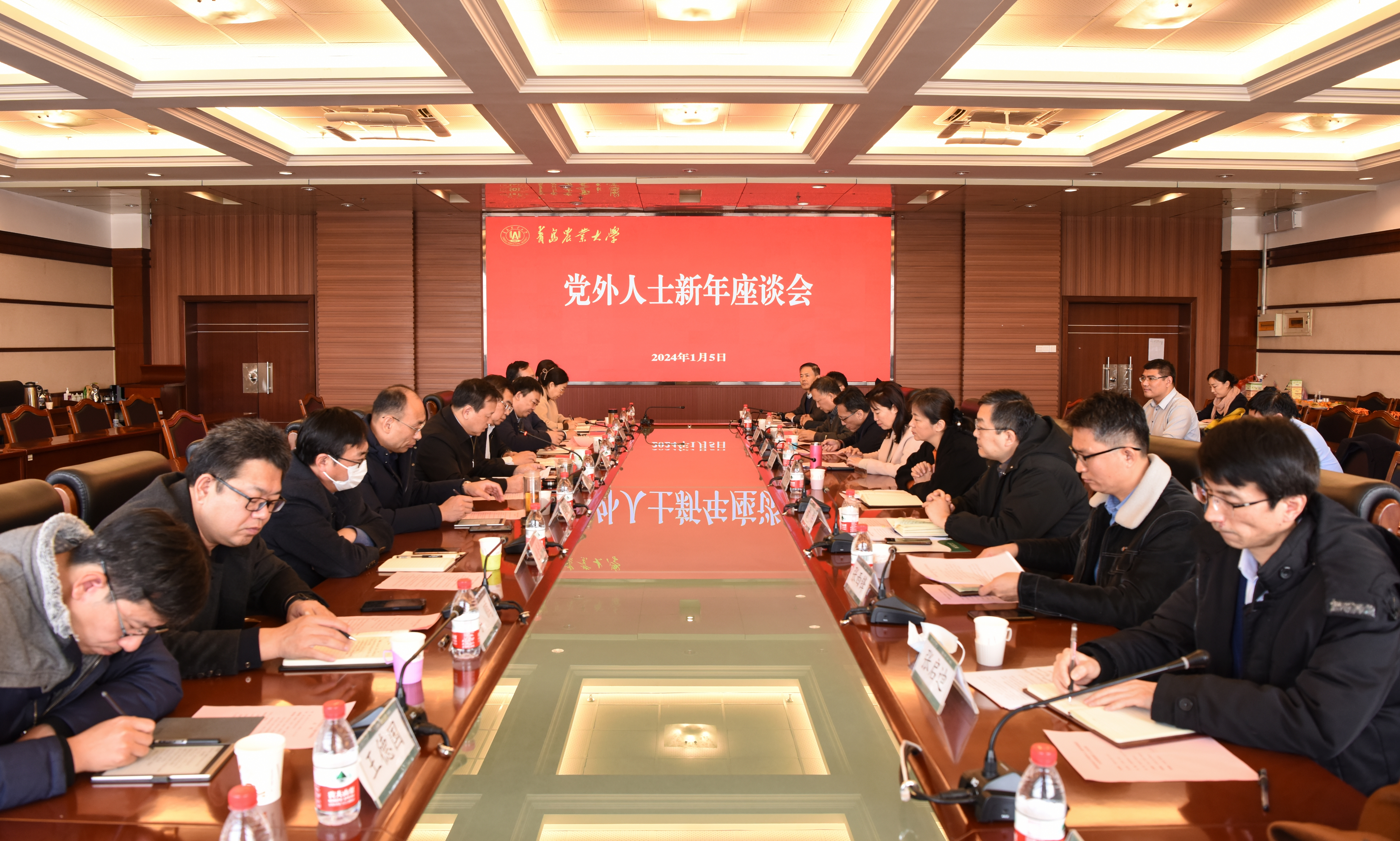 1月5日上午,青岛农业大学在图书馆三楼会议室召开党外人士新年座谈会,校党委书记郭善利、党委副书记王庆军、副校长孟晓军出席会议,校党委委员、宣传部部长、统战部部长慕乾伟主持会议。