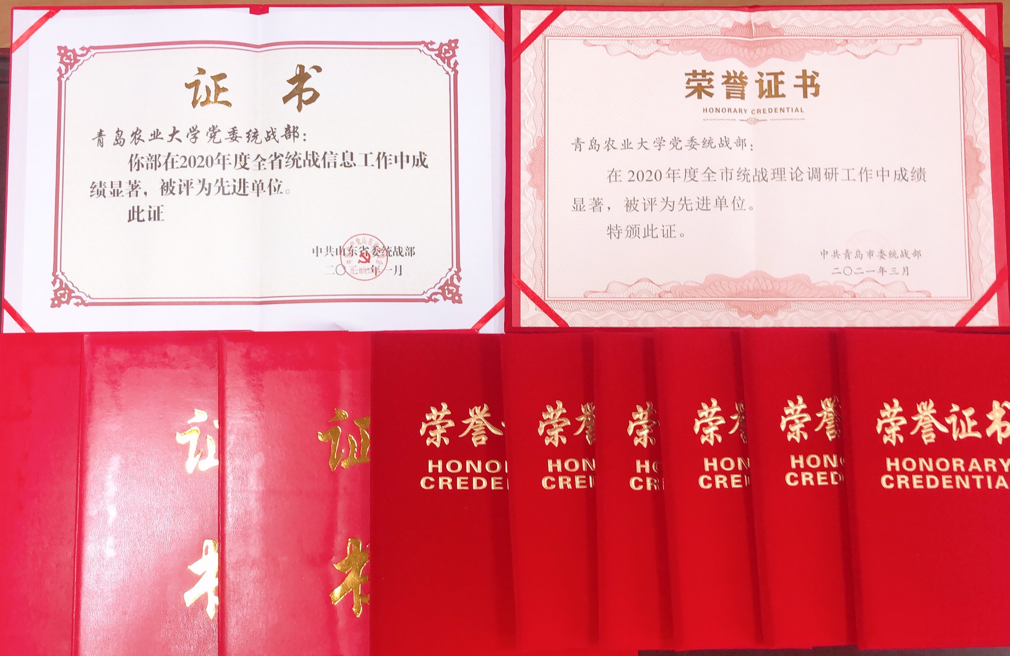 为总结经验、树立典型、推动工作,中共青岛市委统战部对16个全市统战理论调研工作先进单位、16个全市统战宣传工作先进单位、31个全市统战信息工作先进集体、59项全市统战理论调研优秀成果、10项全市统战工作实践创新成果和31名全市统战信息工作先进个人予以通报表扬。我校马克思主义学院蔡娬副教授提报的《统一战线助推民营企业营商环境法制化研究——以青岛市为例》获评全市统战理论调研优秀成果一等奖,党委统战部慕乾伟、徐以师、孙贝贝提报的《高校党外知识分子思想政治工作实效性研究》获评全市统战理论调研优秀成果三等奖,学校党委统战部被评为全市统战理论调研工作先进单位和统战信息工作先进集体,孙贝贝被评为全市统战信息工作先进个人。