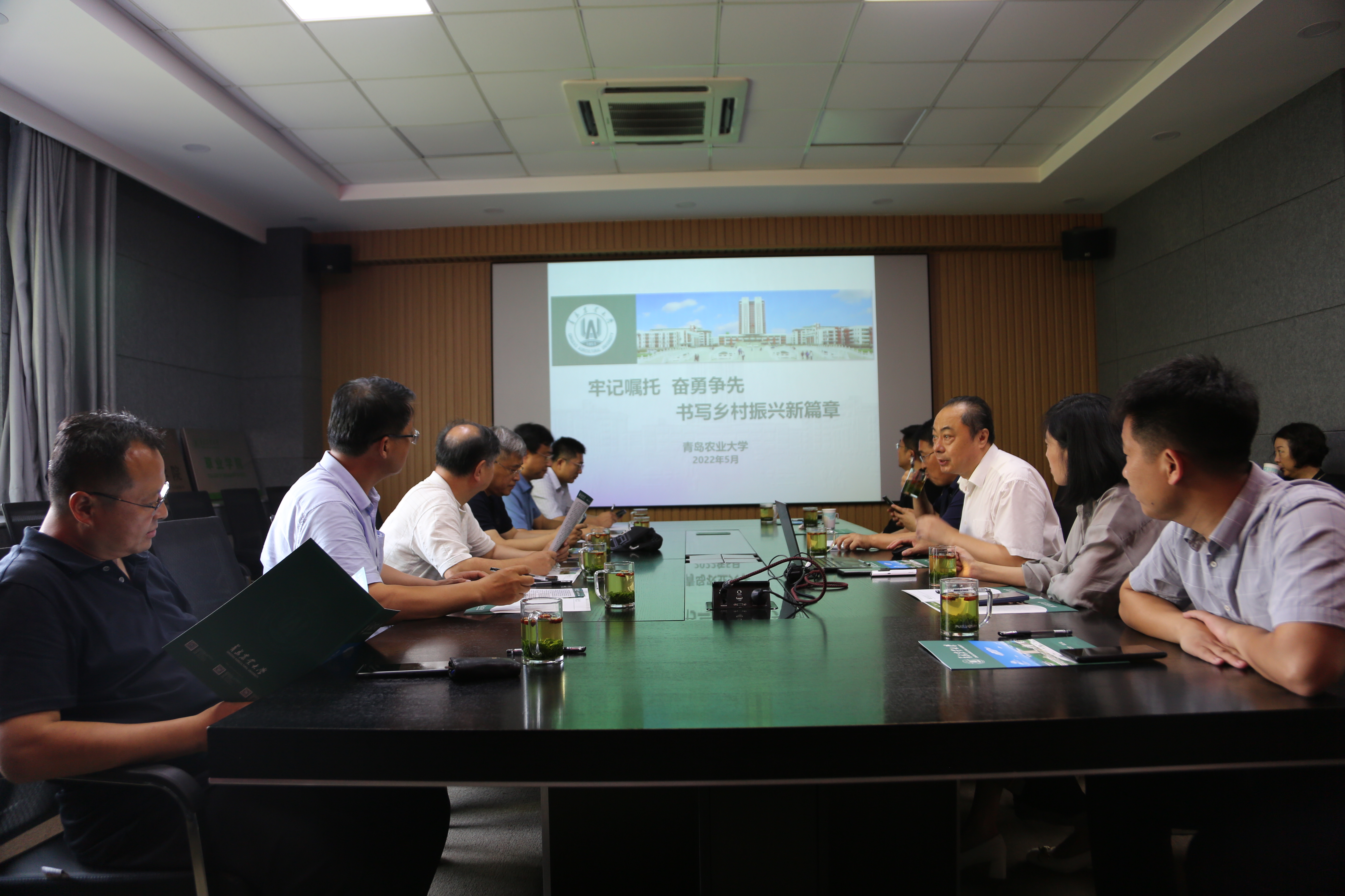 6月23日下午,青岛市政协教科卫体委员会一行13位市政协委员到青岛农业大学考察调研教育科技助力乡村振兴工作。校党委副书记、校长刘新民接待来访客人,在学校进行了参观和座谈。