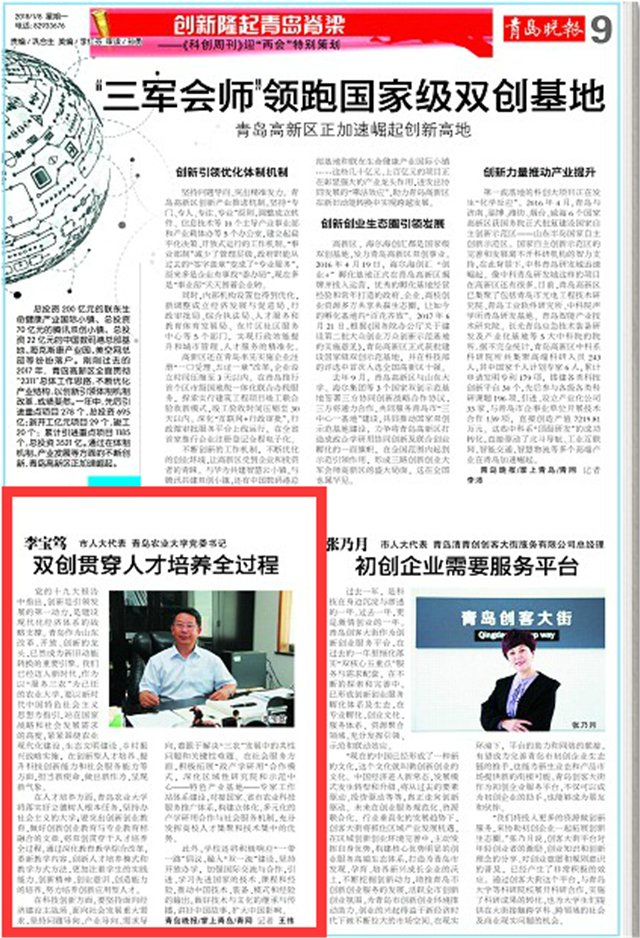 在人才培养方面,青岛农业大学将落实好立德树人根本任务,坚持办社会主义的大学;要突出创新创业教育,做好创新创业教育与专业教育相融合的文章,将双创贯穿于人才培养全过程,通过深化教育教学综合改革,革新教学内容,创新人才培养模式和教学方式方法,更加注重学生的实践能力、创新精神、创业意识、创造能力的培养,努力培养创新应用型人才。