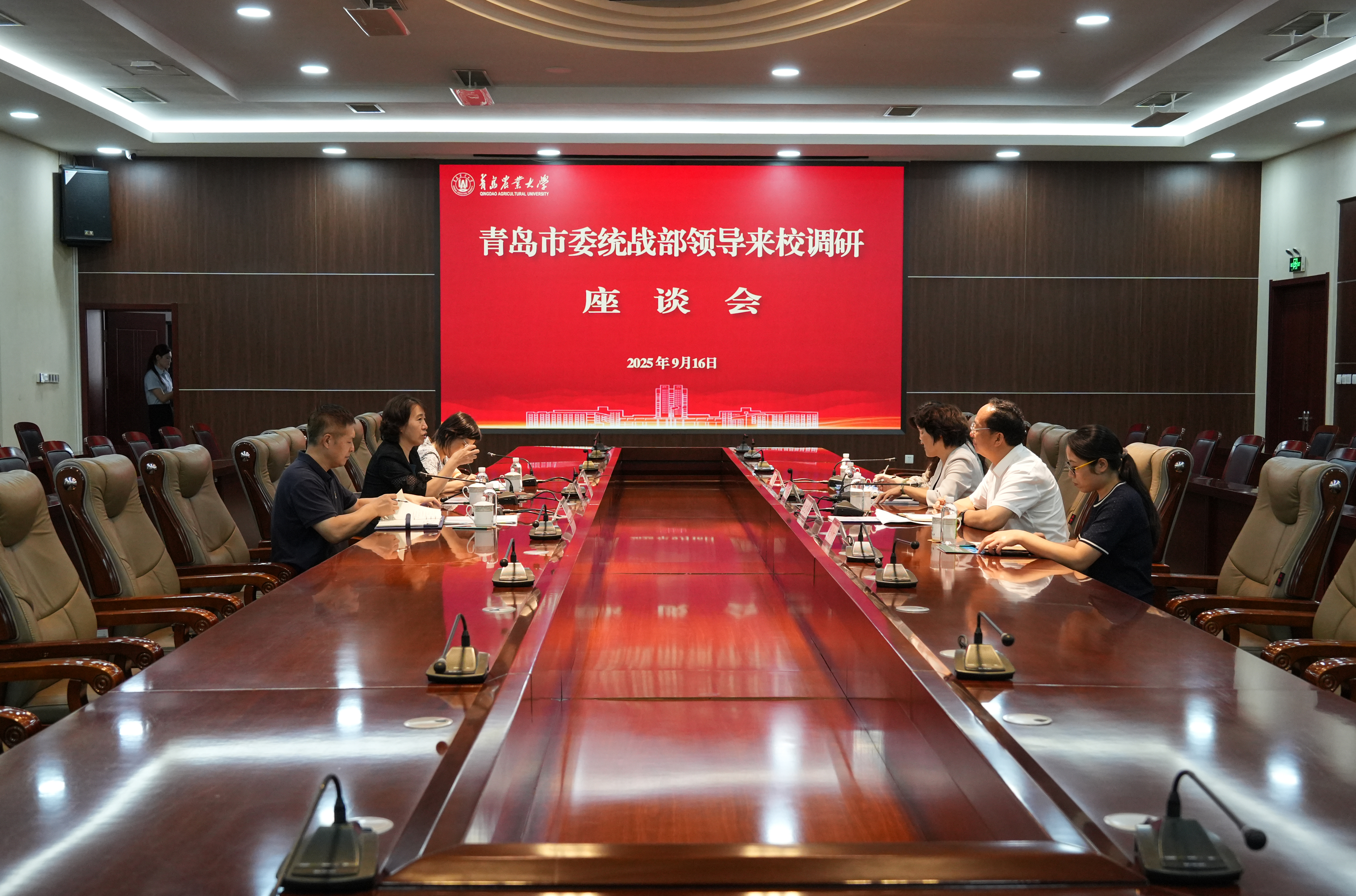 9月16日下午,青岛市委统战部分管日常工作的副部长刘青林一行来校调研。校党委副书记刘春霞主持座谈会,校党委委员、统战部部长赵龙刚参加座谈。
