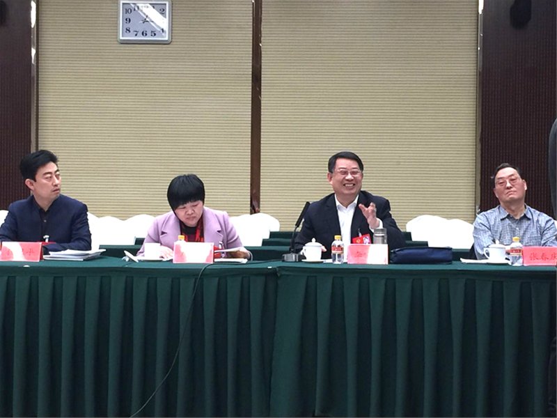 省政协委员、党委书记李宝笃(右二)在农业界小组讨论会上发言