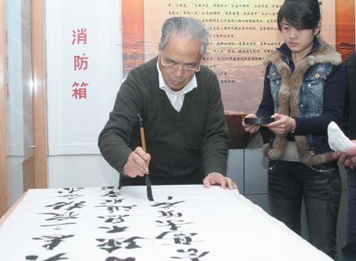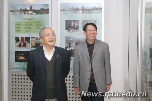 在周学宝、李宝笃、戴洪义等校领导的陪同下,洪绂曾还兴致勃勃地参观了我校的展览馆,详细了解了我校五十多年来各方面的发展成就。他在参观中指出,农业大学要立足于培养农业教育家,在此基础上有力推动我国农业科技的发展。参观结束后,洪绂曾还挥毫题写了我校的办学特色“矢志三农,勤奋求实,自强不息,追求卓越,培养高素质应用型人才”。