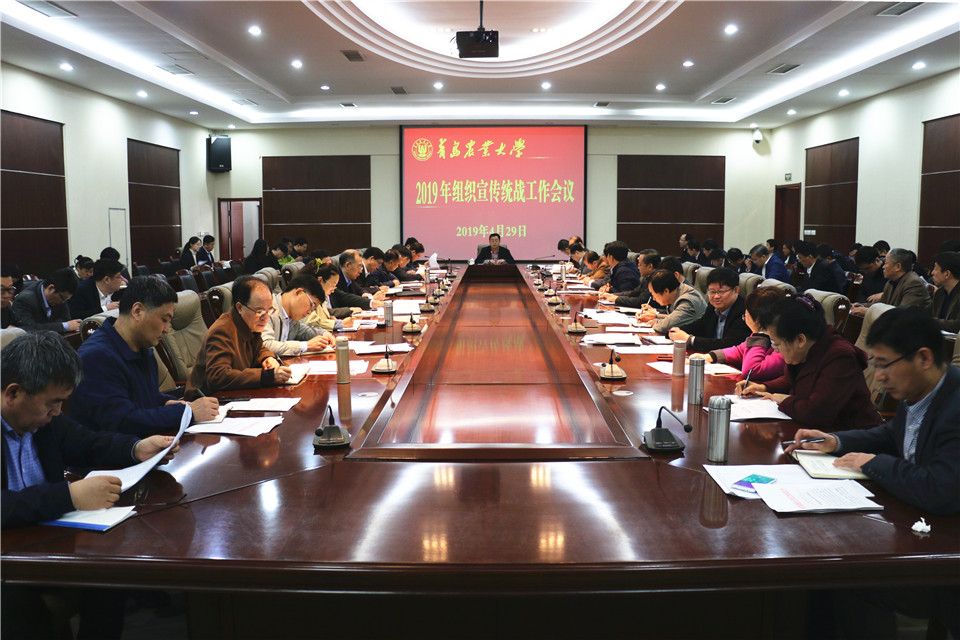 4月29日,青岛农业大学2019年度组织宣传统战工作会议在学术会馆举行。会议传达了全省组织、宣传、统战工作相关会议精神,部署了学校2019年组织、宣传、统战工作。校党委副书记王庆军主持会议并讲话。